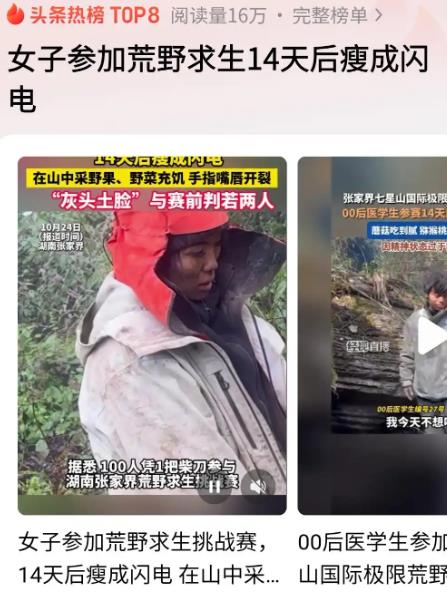女子参加荒野求生14天瘦成闪电 专家:减重伴随肌肉流失,普通人勿模仿